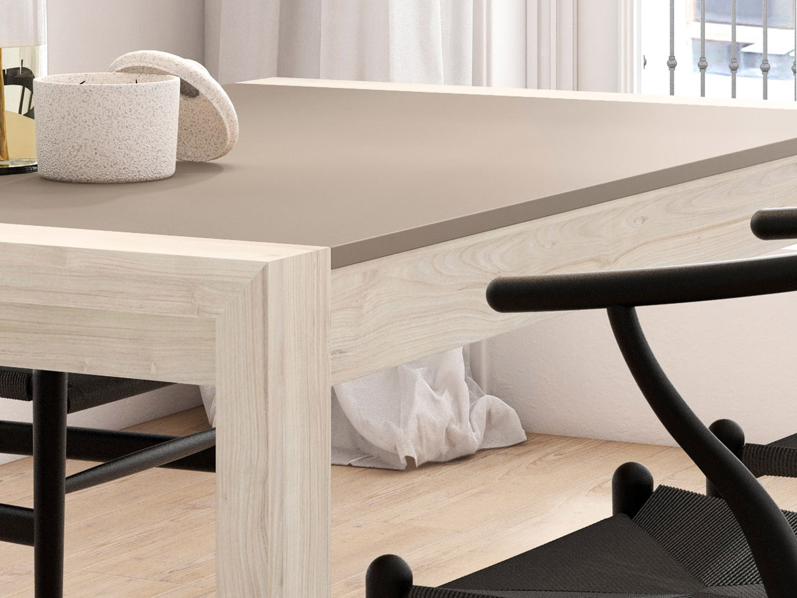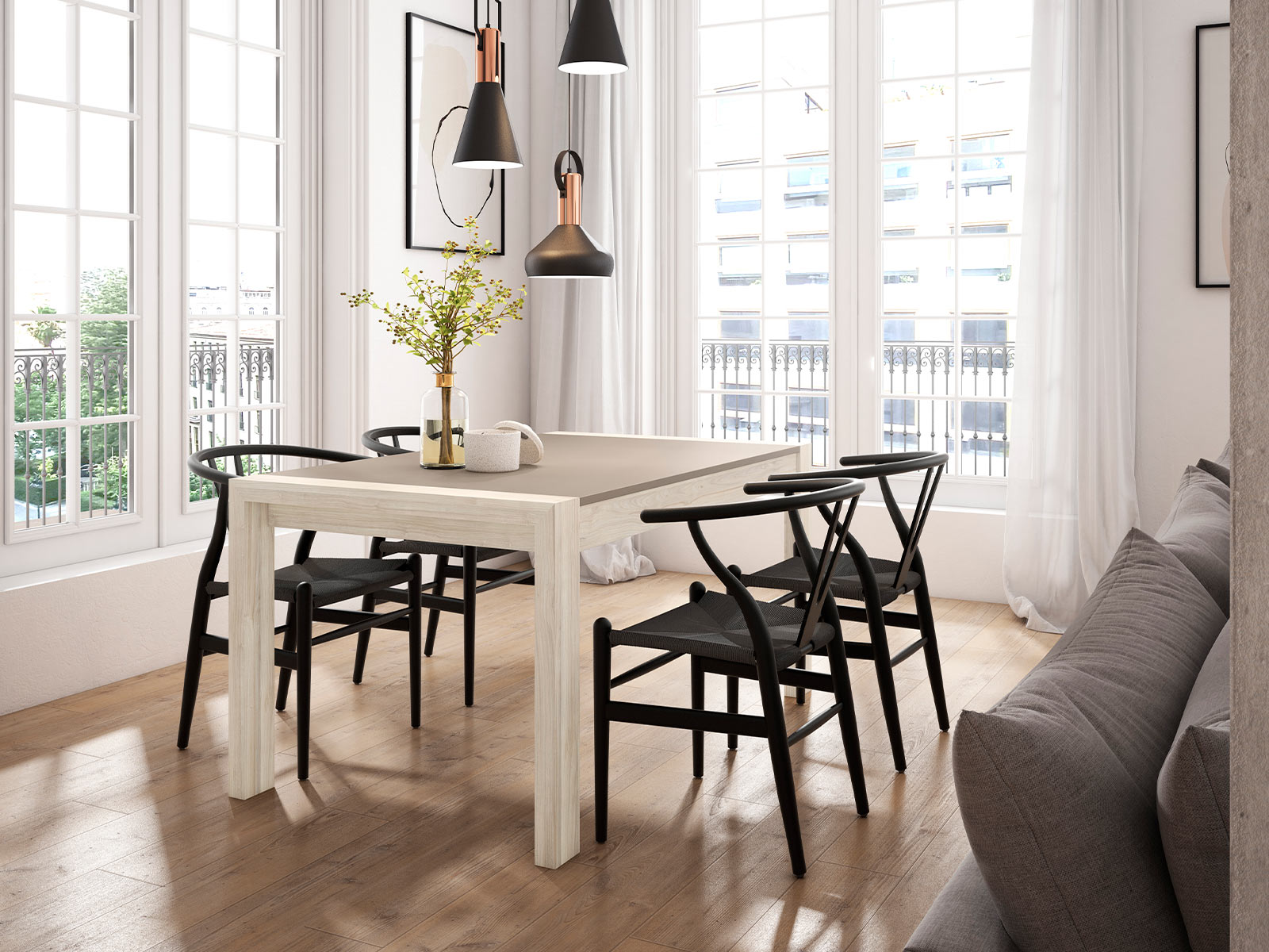 Si buscas una mesa que combine elegancia y practicidad, te encantará nuestra mesa con pata de portería. Esta mesa tiene un diseño moderno y minimalista, con una superficie lisa y unas patas de madera clara que le dan un toque natural y acogedor. Además, puedes elegir entre varios acabados para que se adapte al estilo de tu hogar. Nuestra mesa con pata de portería está disponible en dos modalidades: fija o extensible. La modalidad fija tiene tres medidas diferentes: 130x90, 150x90 y 180x90 cm, para que puedas escoger la que mejor se ajuste a tu espacio. La modalidad extensible tiene dos medidas: 130x90cm con una extensión de 70 cm, y 150x90 cm con dos extensiones de 50 cm. Así, podrás invitar a más personas a tu mesa sin problemas. Para más información o consultas personalizadas, no dudes en ponerte en contacto a través del formulario.
